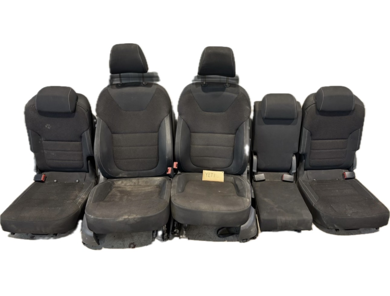 Kompletní sada sedaček z vozu Škoda Yeti. Sedačky jsou v pěkném stavu, bez poškození - nutno vyčistit.